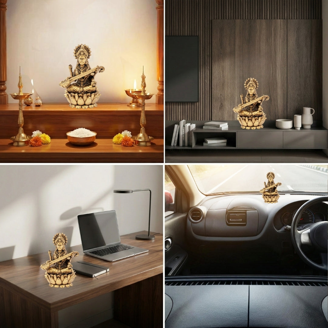 Significance: It is considered that the worship of Maa Saraswati opens the door to real knowledge and eliminates the darkness of ignorance. Under her blessings, students become focused, teachers become clear, and professionals become creative and innovative. Her divine power assists in sustaining harmony of the mind, speech and intellect, and thus she is an idol in those who wish to achieve success in fields of education, music and arts. This idol of Brass Saraswati Ji is not only a spiritual object, but also a source of divine inspiration, which helps believers to be wiser, creative and pure in their thinking.