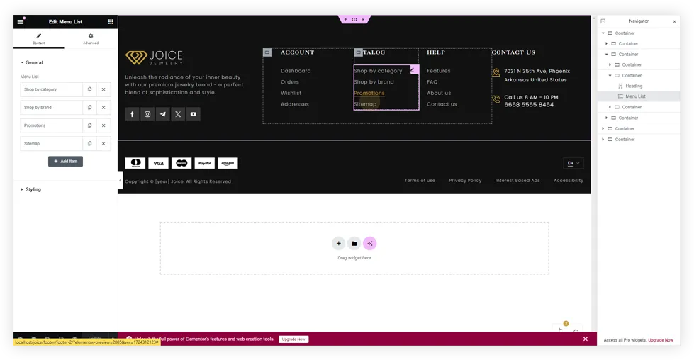 Create with FREE elementor version