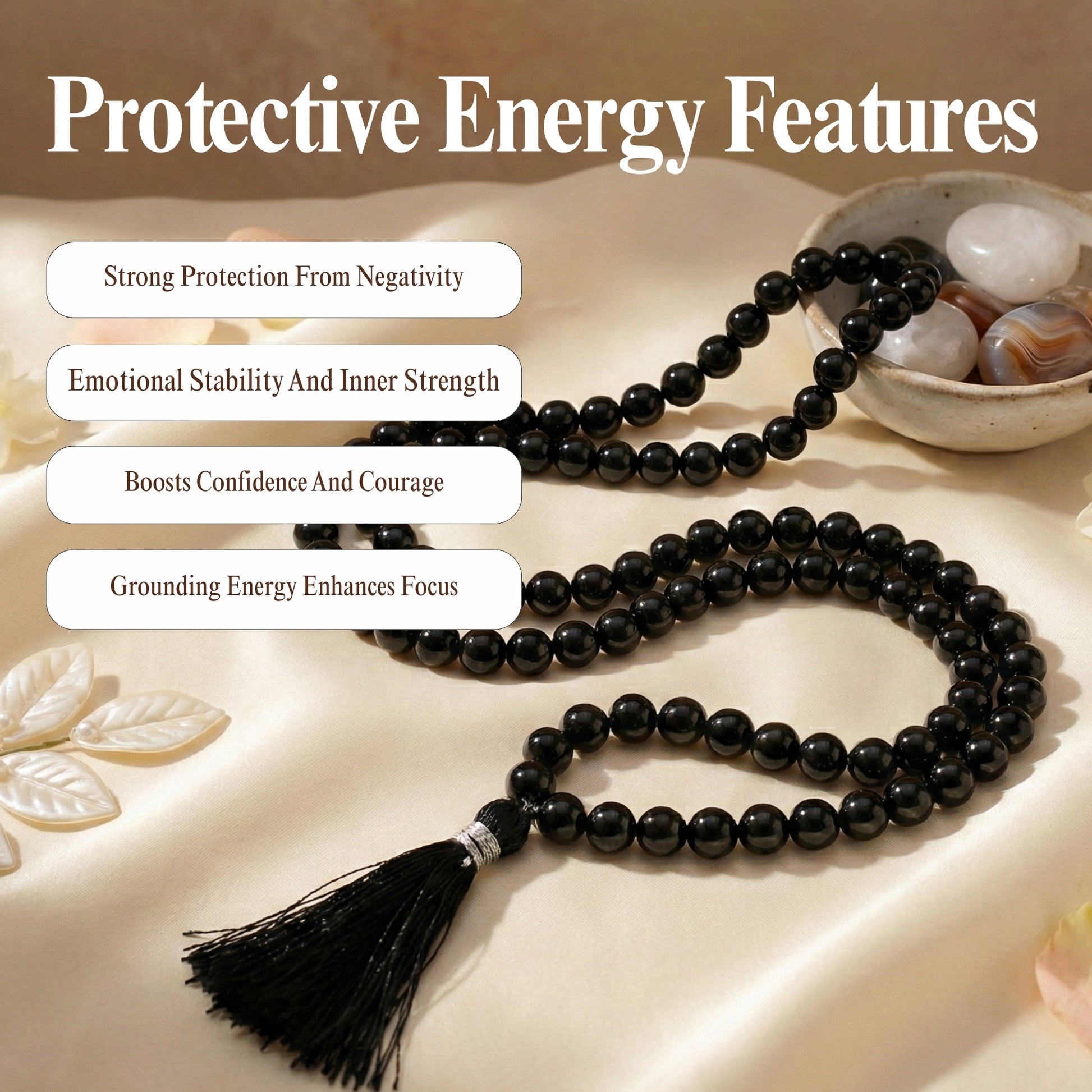 Using the Black Hakik Mala regularly helps foster calmness and resilience in daily life. It connects you to the earth’s stability, which helps you feel more emotionally calm. For people looking for inner strength and security on their spiritual path, this mala is very useful.