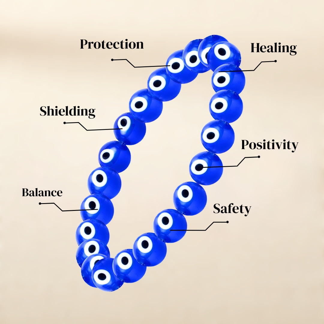 The stylish evil eye bracelet defends against negative energy while bringing positive power and also providing spiritual protection. Ideal for daily wear and good vibes.