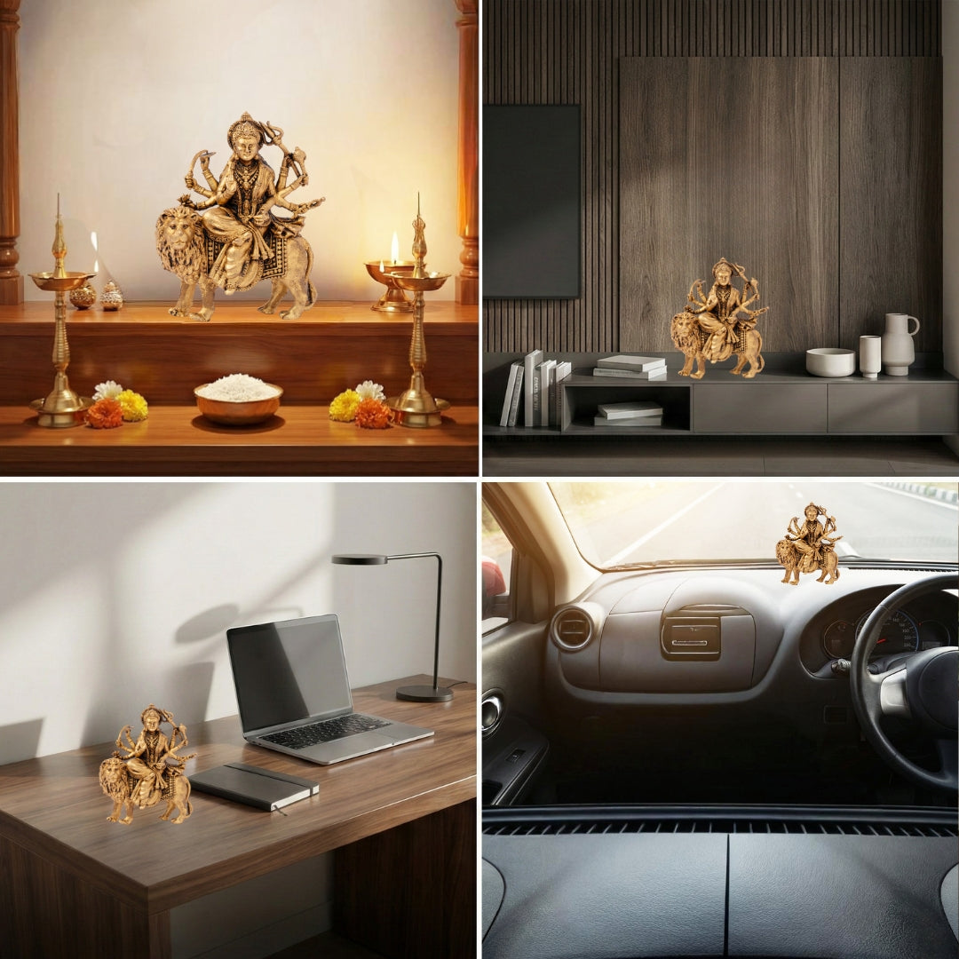View compareThis beautiful idol of Maa Durga was made in Asthdhatu (holy mixture of eight metals), and it is a goddess figure of power, bravery, and triumph of the good over the evil. Maa Durga, the ultimate personification of Shakti (power), is beautifully seated on her vahana - the mighty lion, which is a symbol of fearlessness, bravery and unfading determination. The idol is a wonderful representation of Maa Durga in her glaming counterpart with the elaborate ornaments, flowing clothes, and royal crown. Her calm, but authoritative, face displays mercy as well as absolute power. She holds weapons of divinity, the trishul (trident), chakra (discus), khadga (sword), dhanush (bow), and shankh (conch) with several arms. Both weapons are very symbolic: protecting followers, defending justice, teaching wisdom and destroying wicked creatures. The lion under her is full of crude strength and bravery, as it enshrines her domination over even the most violent forces of nature. The meticulousness of the craftsmanship underlines not the artistic accuracy, but the spiritual radiance which emanates from the idol. It is thought that by having this Asthdhatu Maa Durga idol in your place of worship, at home, or office, evil is cleared away, enemies are kept at bay, and peace, wealth, and spiritual power are welcomed. It is like a reminder of the very essence of resilience, divine protection, and eternal victory of dharma over adharma. This idol is ideal to be used during the Navratri puja, temple worship, festivals, or as a religious offering and is a potent source of the blessings of Maa Durga. It is a spiritual masterpiece and is also a lucky piece as it is 3 inches tall, 2.5 inches wide, and its weight is about 108 g.