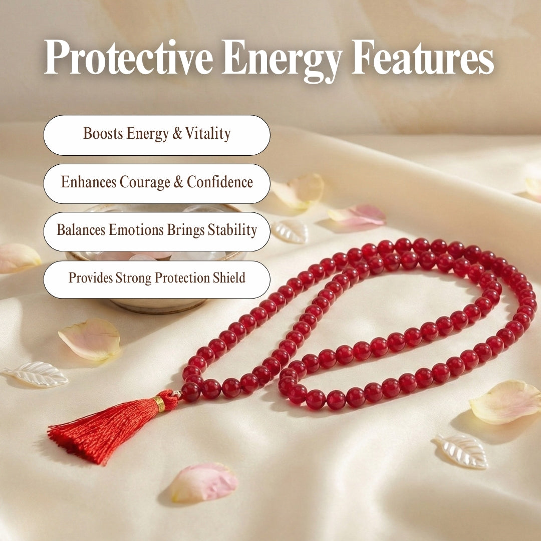 Wearing or using the Red Hakik Mala helps anchor your energy, offering a sense of stability during challenging times. This training encourages toughness of the mind so that you gain confidence and inner strength. This spiritual object is a great aid for people who wish to strengthen their spiritual self.