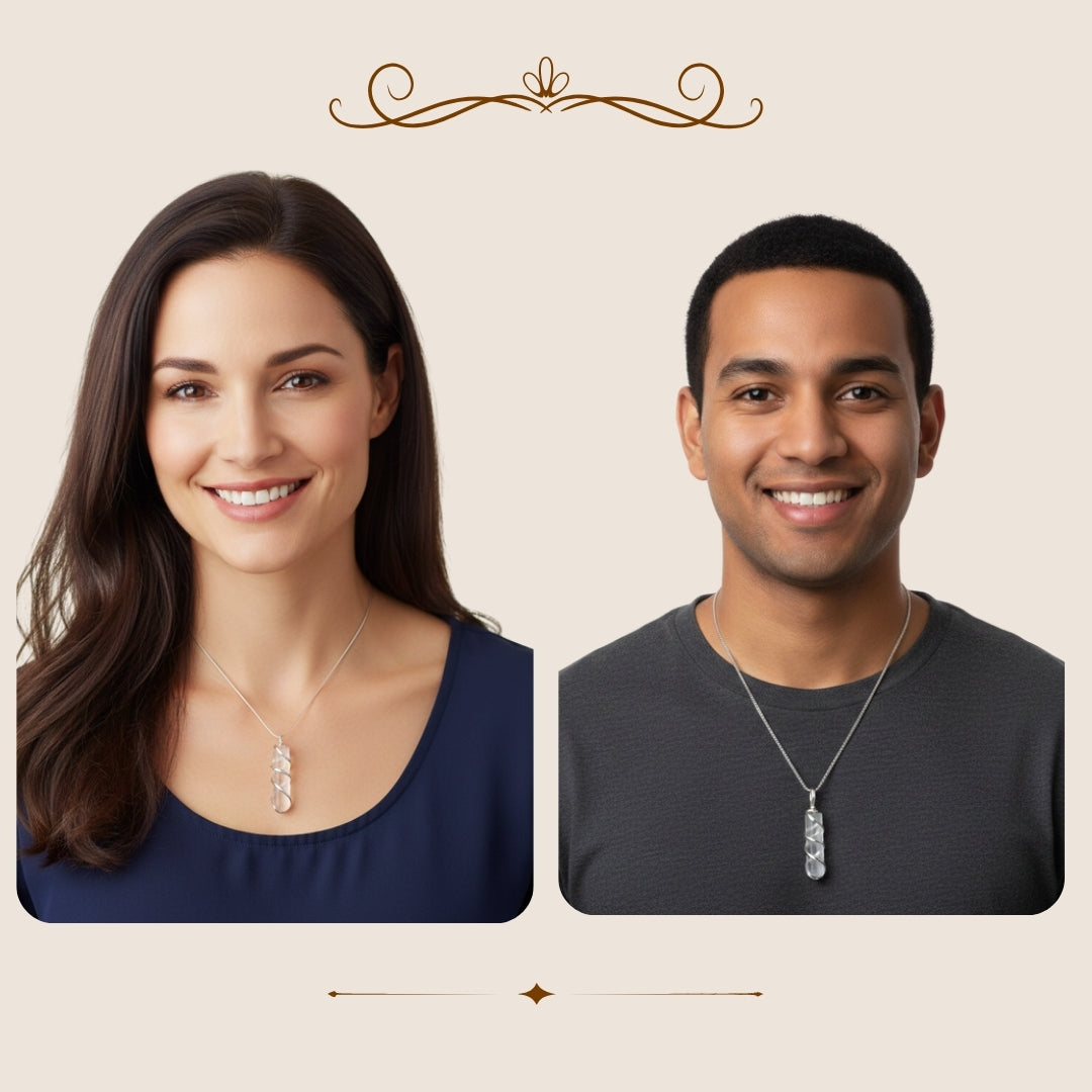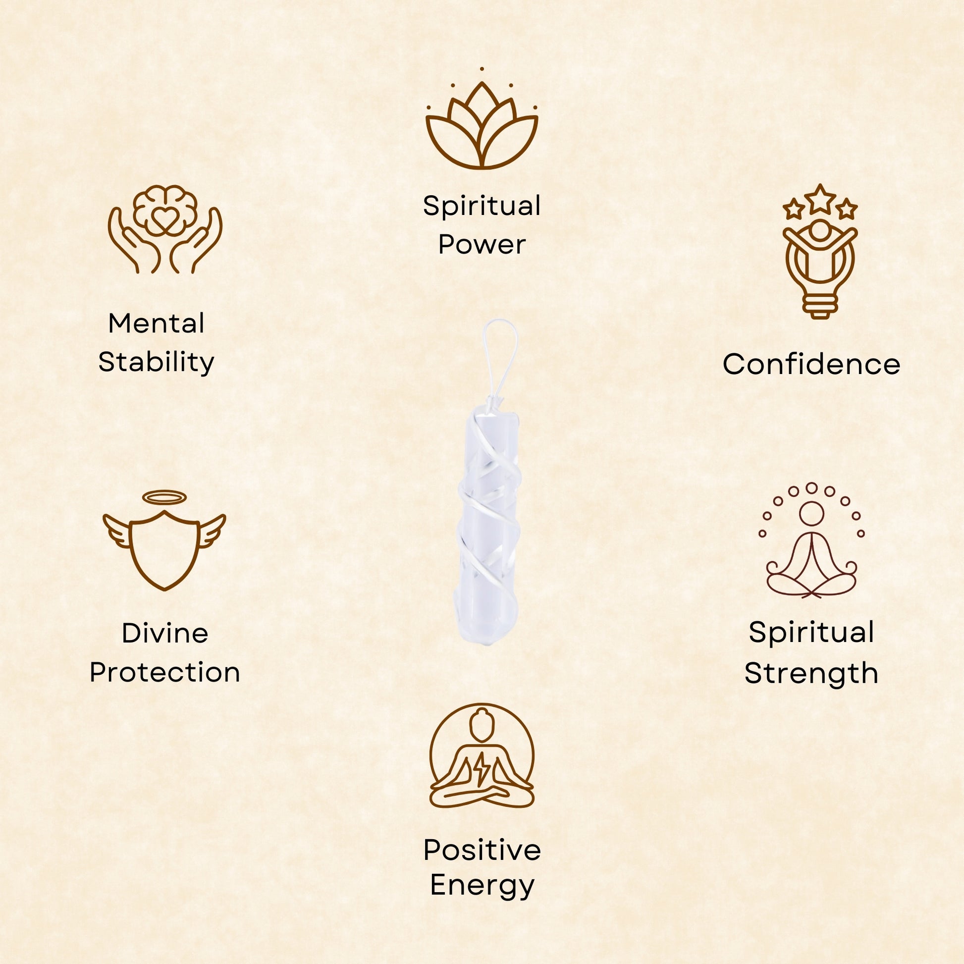 Feel the raw power of the Omindri Sphatik Pendan,t designed to help achieve mental purity, tranquillity and spiritual balance. Spatik, also referred to as clear quartz, is an effective stone that clears negativity and helps improve concentration and happiness. It can be used during meditation and in everyday life as well, as the pendant will help you to synchronise your energy and improve your spirituality.