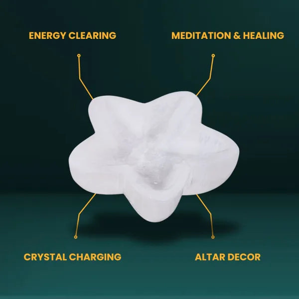 Path Lighten your spiritual life with the Star Selenite Plate, artistically sculpted into a star form of celestial magnificence and filled with the high-vibrational power of selenite. Selenite is a strong cleansing and healing stone capable of clearing negative energy to bring mental clarity. This star-shaped plate can be a special addition to your altar, meditation area, or crystal grid arrangements because this shape is taken to mean guidance and hope and connection with the divine. May this bright work raise you and your environment.