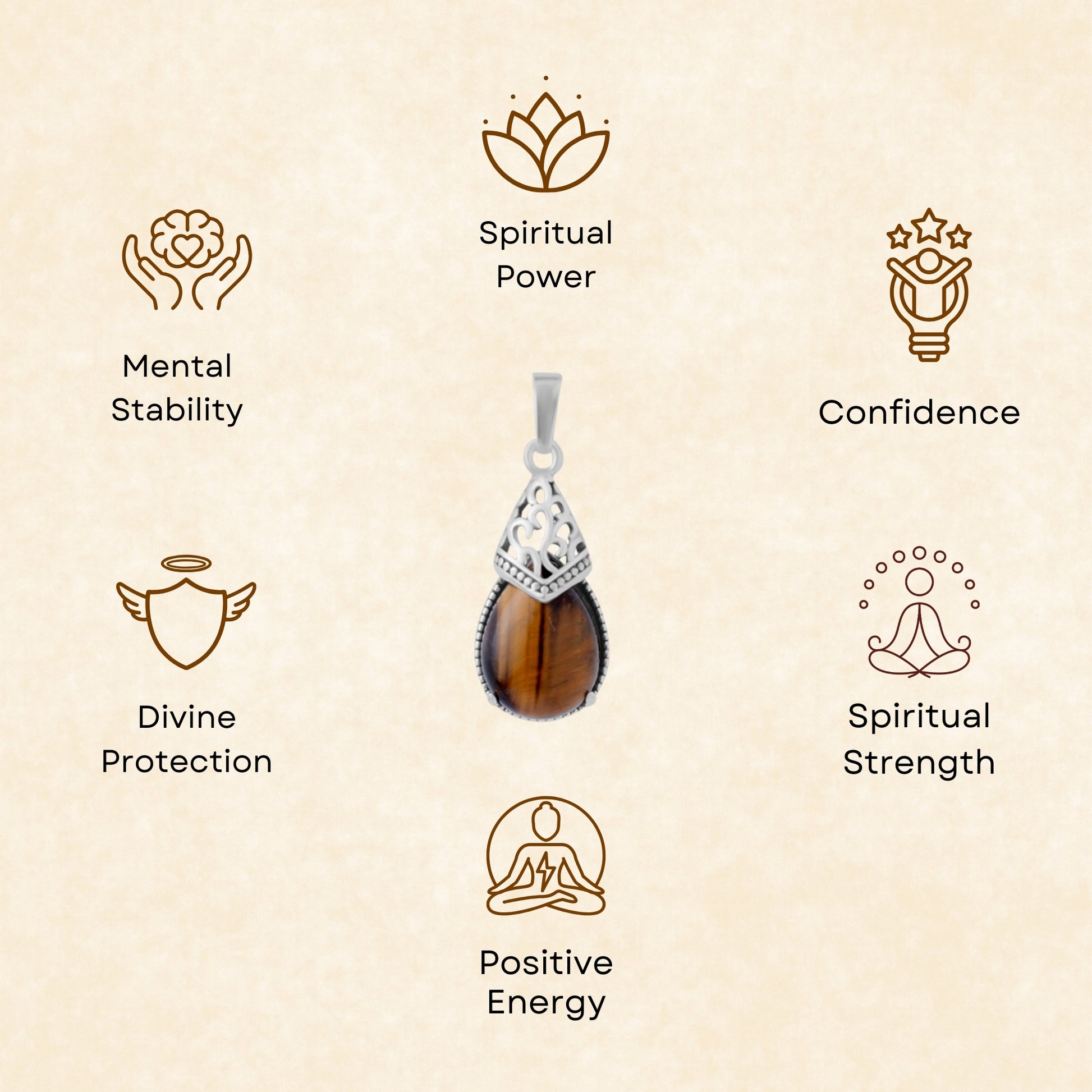 Walk in Your Power with the Tiger eye pendant by Omindri. Tiger eye, which is also connected with the ability to conquer fear, increase confidence, and strengthen concentration, is also referred to as the stone of courage and protection. This pendant is ideal in finding direction and strength in daily life with its rich golden-brown shades, as well as strong grounding effects.